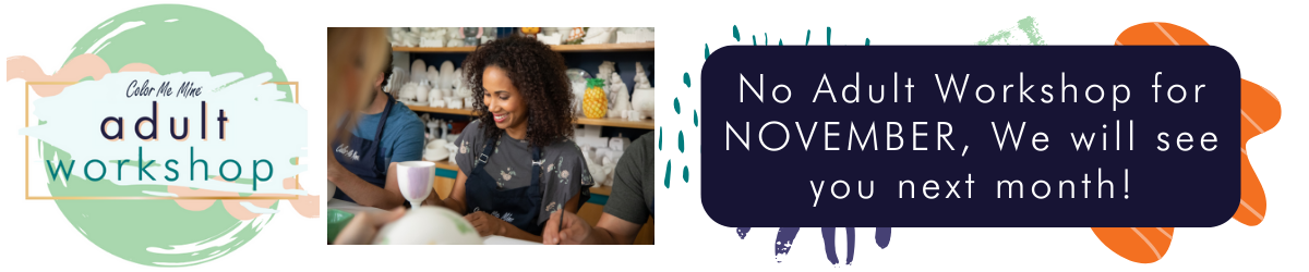 During our monthly Adults Only Workshops, our instructor will guide you to paint our featured project or learn a fun painting technique.
